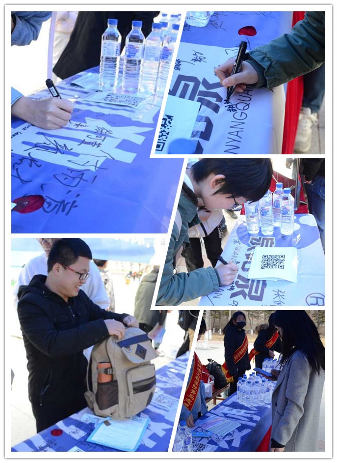 志愿者們通過科普宣傳的方式告知同學(xué)們關(guān)愛自閉癥兒童的重要性。同學(xué)們積極參與到義賣當中,用自己的實際行動親身參與到慈善活動當中,并在條幅上簽下自己的名字,留下自己獻出愛心的印記。