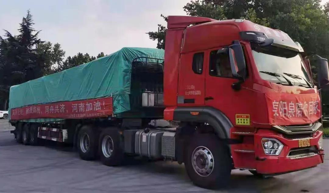 ? ? ? 今年7月中旬,河南省出現(xiàn)持續(xù)性極端強降雨,造成鄭州、新鄉(xiāng)、安陽、鶴壁等多個縣市、鄉(xiāng)鎮(zhèn)受災(zāi)。河南人民群眾的生命和財產(chǎn)安全受到威脅。洪水肆虐,災(zāi)情牽動著全國人民的心。2021年7月25日,吉林森工集團泉陽泉飲品有限公司從泉陽工廠整裝出發(fā),穿越1800公里,馳援鄭州,為河南人民送去必要的救災(zāi)物資。