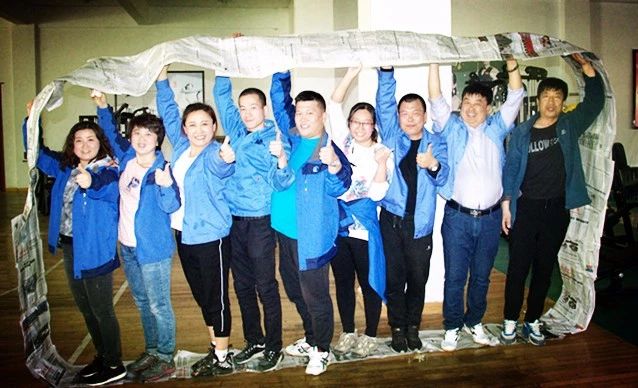 每個隊用提供的材料將報紙圍成一個可以行進(jìn)的履帶式的環(huán),要求本組所有成員在規(guī)則要求下走完規(guī)定的路程,以最快到達(dá)終點的組為優(yōu)勝。
